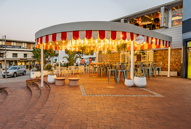 Situated in the heart of Plettenberg Bay on bustling Main Street, Slops Restaurant and Bar is a lively, laid-back dining destination that captures the town’s relaxed coastal spirit. A favorite stop for both locals and visitors, Slops blends casual comfort with a vibrant social atmosphere, making it a natural gathering point throughout the day and into the evening.